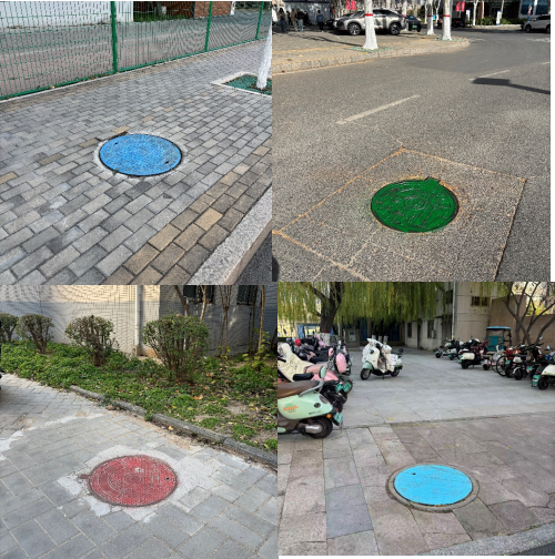 据了解,新标识体系以色彩清晰划分井盖属性:绿色代表校园网,传递安全、活力的管理理念;浅蓝色、红色、深蓝色则分别对应中国移动、中国联通、中国电信的通信设施,既贴合各运营商品牌视觉特征,又让井盖功能“直观可见”。