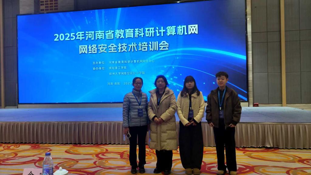 为深入贯彻总体国家安全观,筑牢教育系统网络安全防线,提升高校信息化工作人员的安全技术素养与实践能力,河南省教育科研网网络安全技术培训会议于2025年12月4—5日在南阳市顺利召开。中心教师李静、郑迎凤一行4人参加此次培训。