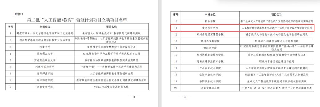 近日,河南省教育厅公布第二批“人工智能+教育”领航计划立项结果。黄河科技学院组织申报的《人工智能赋能计算机类实战课程一体化平台建设及智能评价应用》项目经过初审、答辩等严格评审环节,成功获得立项,标志着学校在推动人工智能与教育教学深度融合方面再次迈出了坚实一步。