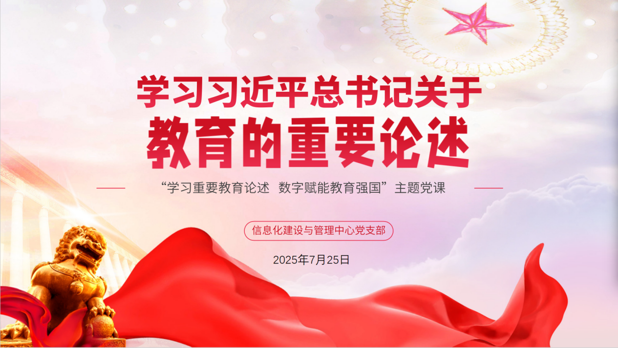为深入学习贯彻习近平总书记关于教育的重要论述,深刻把握教育强国建设的战略部署,引导中心全体党员将信息化工作主动融入教育发展全局,7月25日下午,信息化建设与管理中心党支部在信息大楼601会议室举办“学习重要教育论述 数字赋能教育强国”专题党课学习活动。活动由党支部书记董峰同志主持并作专题解读,全体党员参加学习。