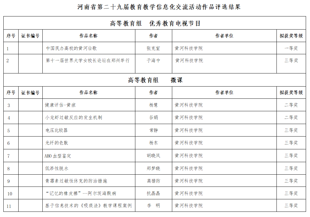 学校高度重视此次交流活动,信息化建设与管理中心积极组织教师参与申报。经专家评审,共有11件作品获奖。其中,张克宣老师创作的《中国民办高校的黄河壮歌》荣获“优秀教育电视节目”一等奖;杨慧、谷娟等老师在微课项目中分获二等奖;常静、杨东、胡晓凤等多位老师的微课作品,以及李明老师提交的《基于信息技术的〈吸痰法〉教学课程案例》荣获三等奖。